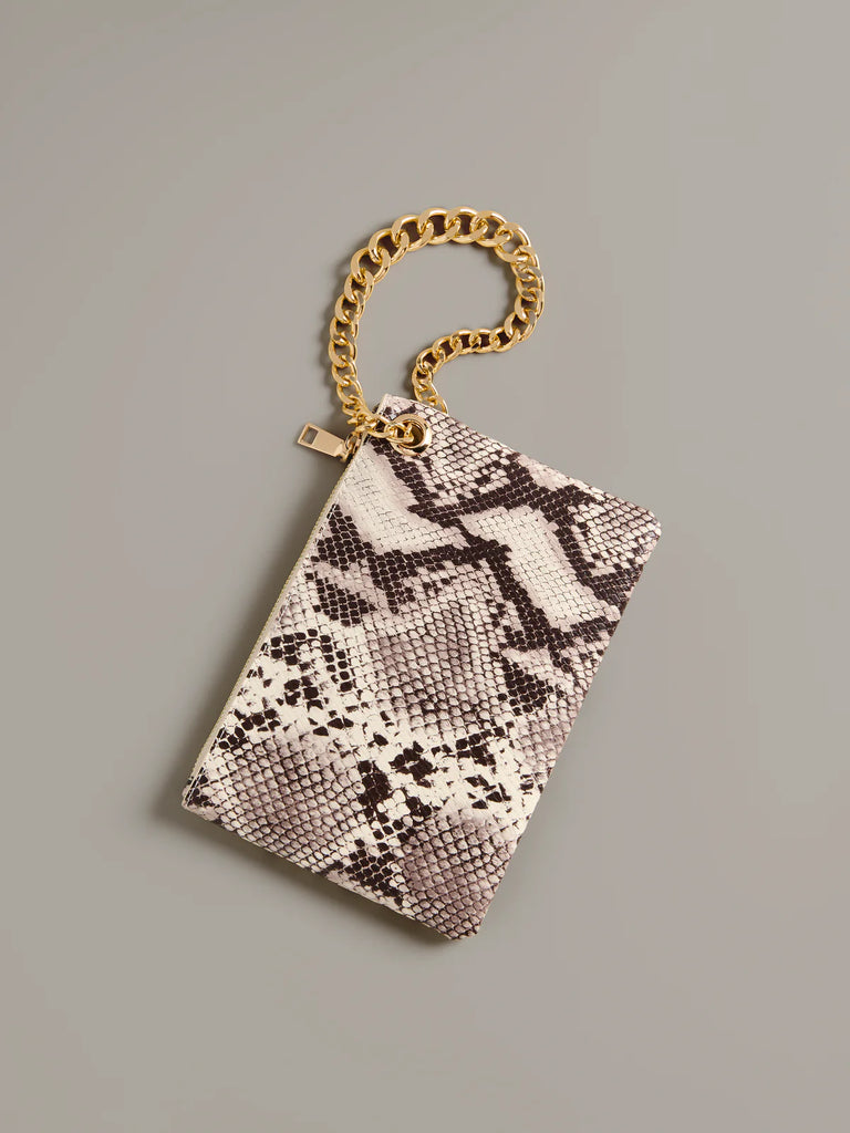 The Lauren Wristlet is your go-to companion for when you want to travel light but still turn heads. With a luxe gold chain wrist strap and sleek zip-top closure, this clutch is equal parts chic and functional. It’s just the right size to stash your phone, cards, and must-haves, with an inner slip pocket to keep things tidy. Whether you're running errands or out for the evening, it’s the grab-and-go bag that gets the job done in style.