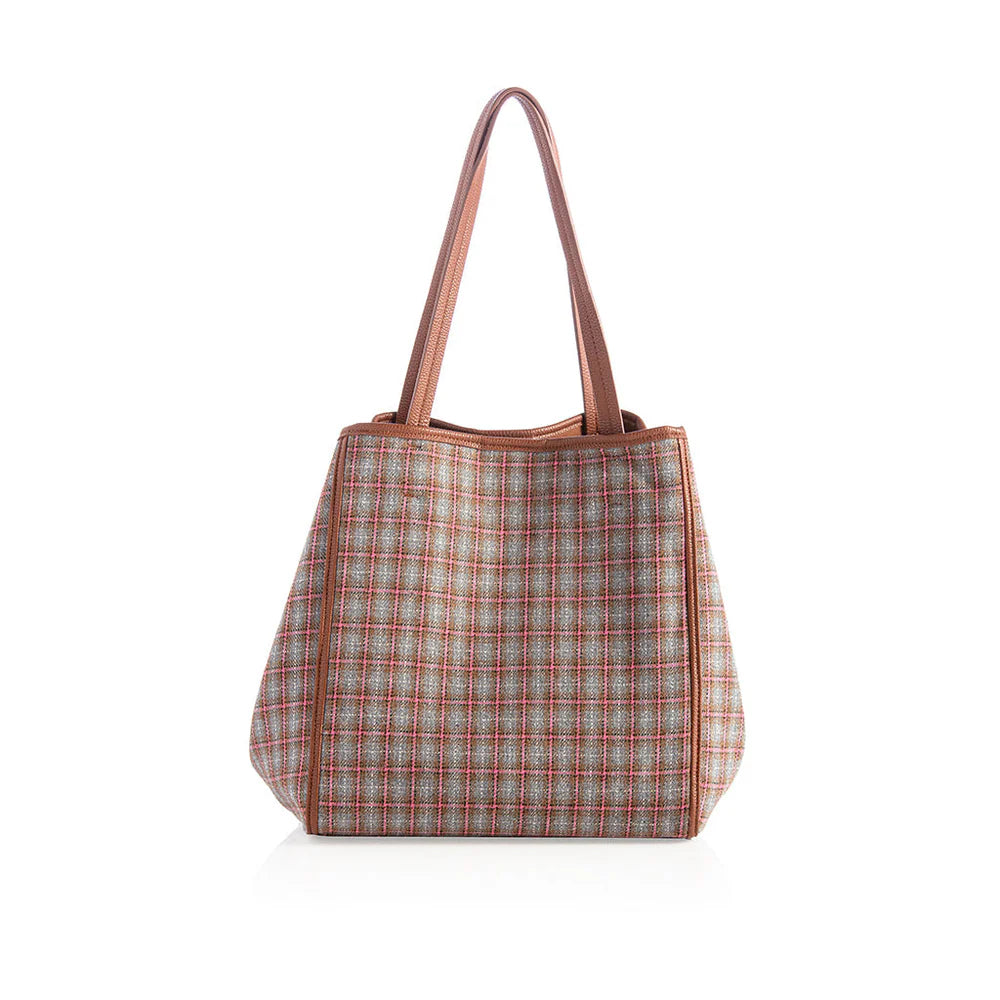 Give your accessories a sleek update with Shiraleah’s Vale Tote. This tote features a plaid print in a neutral color way, giving this classic silhouette a modern revamp. Measuring L 21" × W 9.5" × H 12", the Vale Tote is sure to become a staple of your wardrobe. This tote is equipped with double handles, magnetic snap closure and one inner zip pocket maximizing the space of this larger bodied bag. Pair with other items from Shiraleah to complete your look!