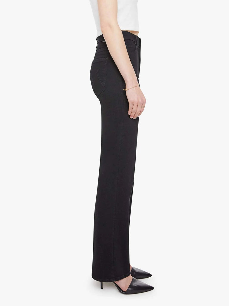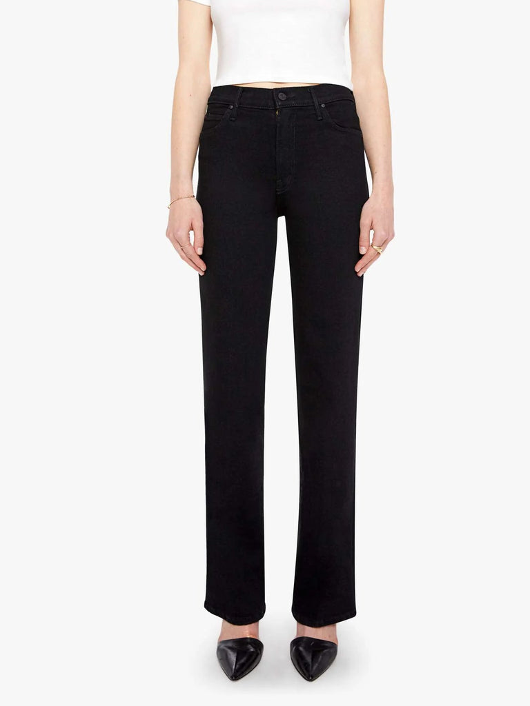 Lights out. A high-rise straight-leg jean with a 32-inch inseam and a clean hem. Made from stretch denim, Nighty Night is a true black with tonal hardware.
