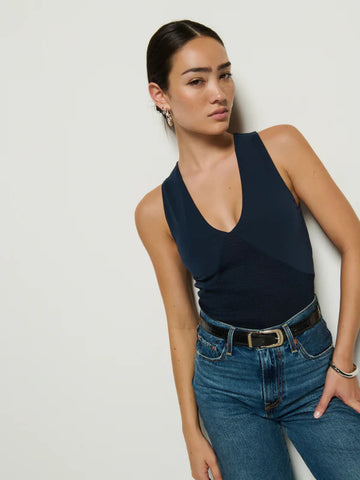 Fiona V-Neck Tee - Ivory/Black Stripe
