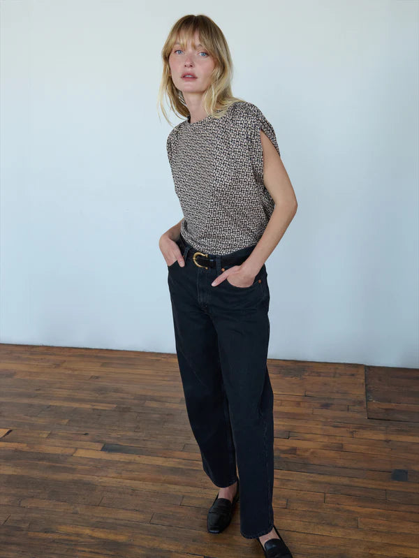 A dressier, smoother, more luxe version of our classic cool-girl muscle tank with shirred shoulders. This one comes in Ditsy Floral Butterscotch.