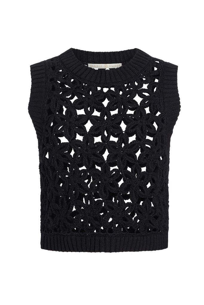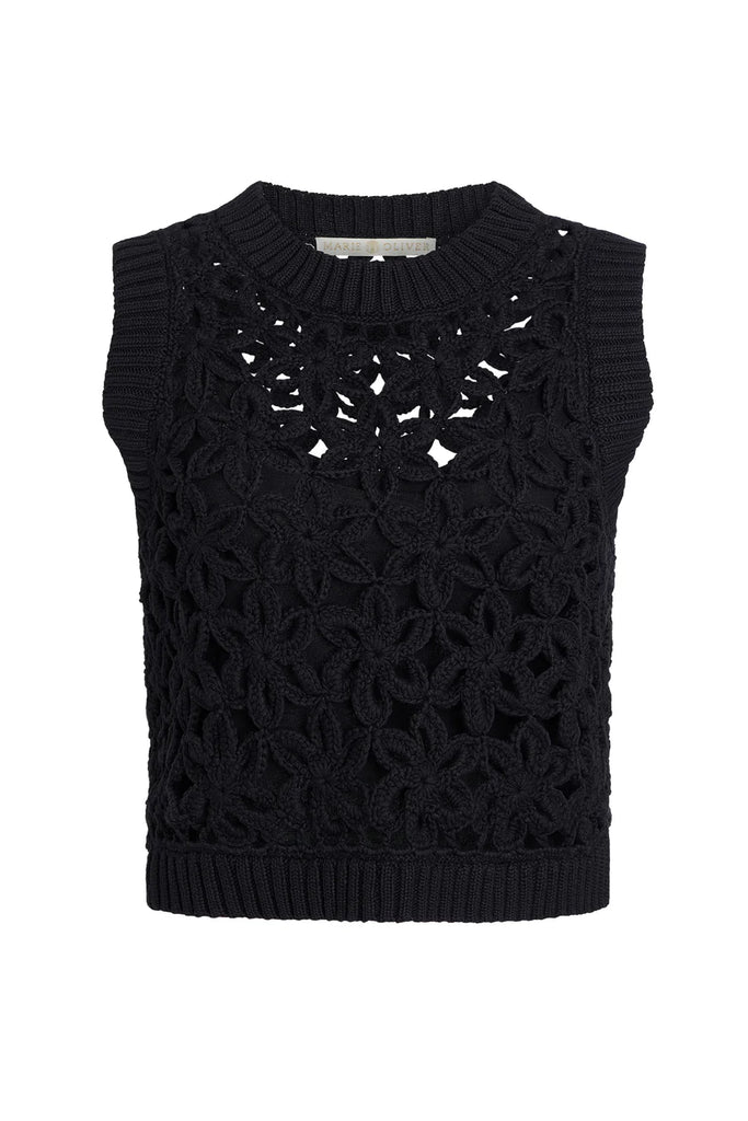 Our design team loves a classic black top, but this crochet shell is a timeless favorite. The chic silhouette features a cropped figure-skimming fit, a cotton tank liner, and a gorgeous floral overlay.