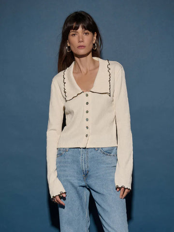 Maureen Luxe Rib Crewneck Cardigan - Sugar