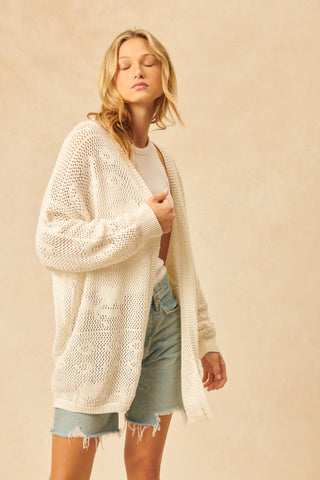 Maureen Luxe Rib Crewneck Cardigan - Sugar