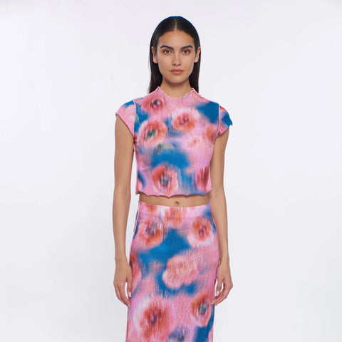 Sienna Luxe Rib Crewneck Crop Top - Sugar