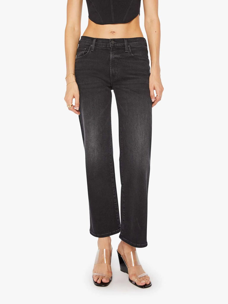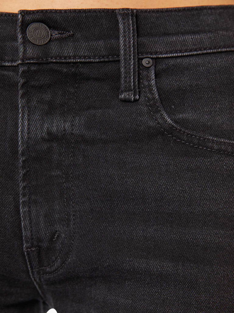 Mid-rise jeans with a wide straight leg, zip fly and clean 28.25-inch inseam. Crafted from soft stretch denim, Spiked Hair Art Flair is a washed black with super-subtle fading and whiskering.