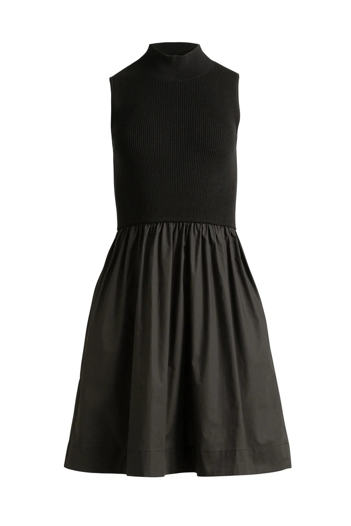 New for the season, our mixed-media Reynolds dress combines comfort and clean lines with a ribbed knit bodice and crisp cotton poplin mini skirt. The easy slip-on silhouette pairs perfectly with boots and a jacket for a polished, fall-ready look.
