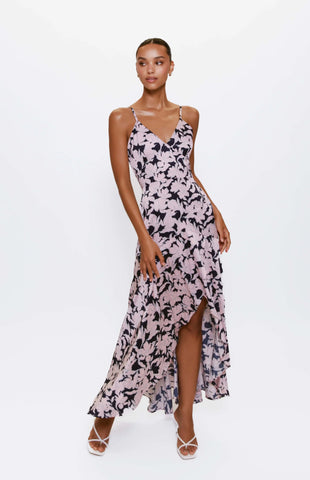 Halter Neck Belted Maxi Dress - Purple Gardenia