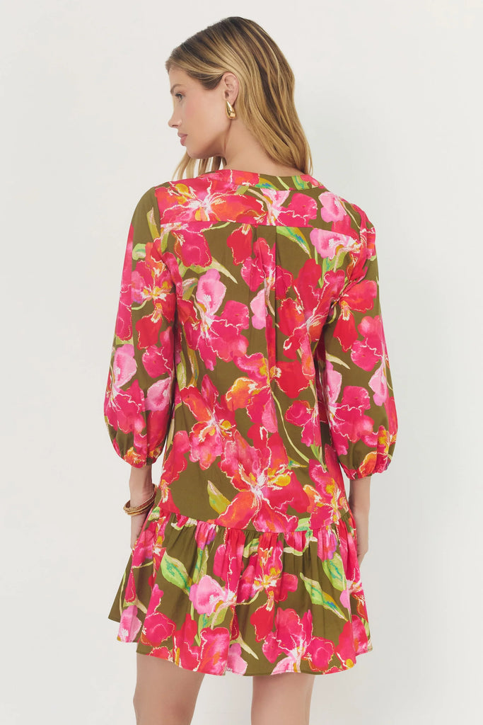 Tamia Dress - Olive/Multi Watercolor Vivid Orchids