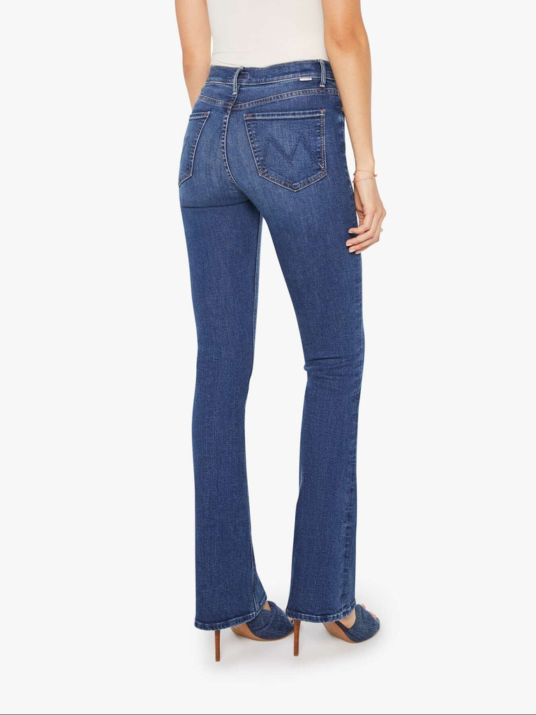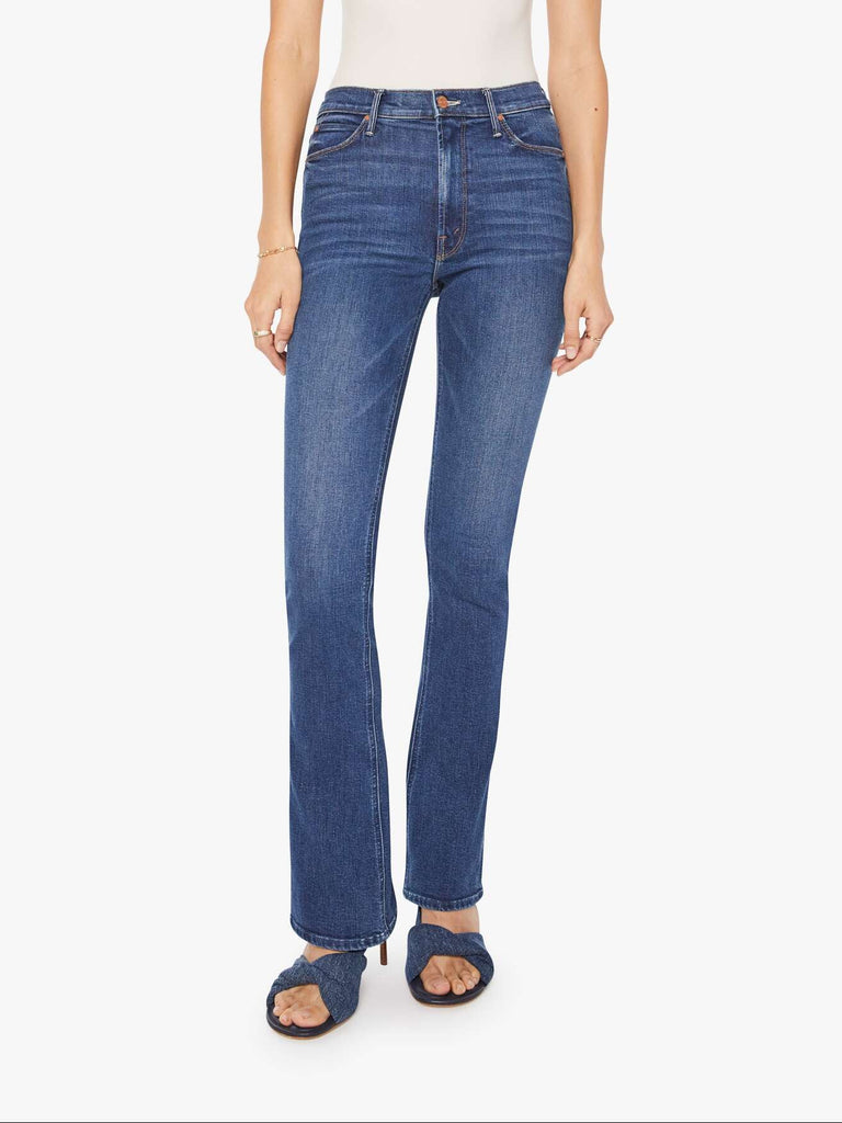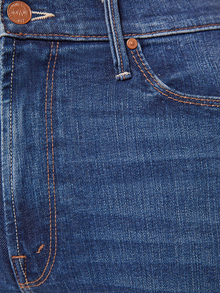 Ready, set, go. A classic skinny flare with a high rise, zip fly and a long 35-inch inseam with a clean hem. Made from a blend of recycled stretch denim, Start Your Engines is a dark blue with whiskering and fading at the knees.