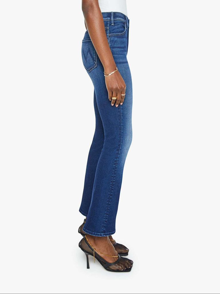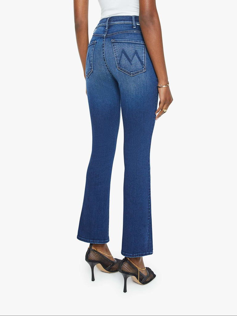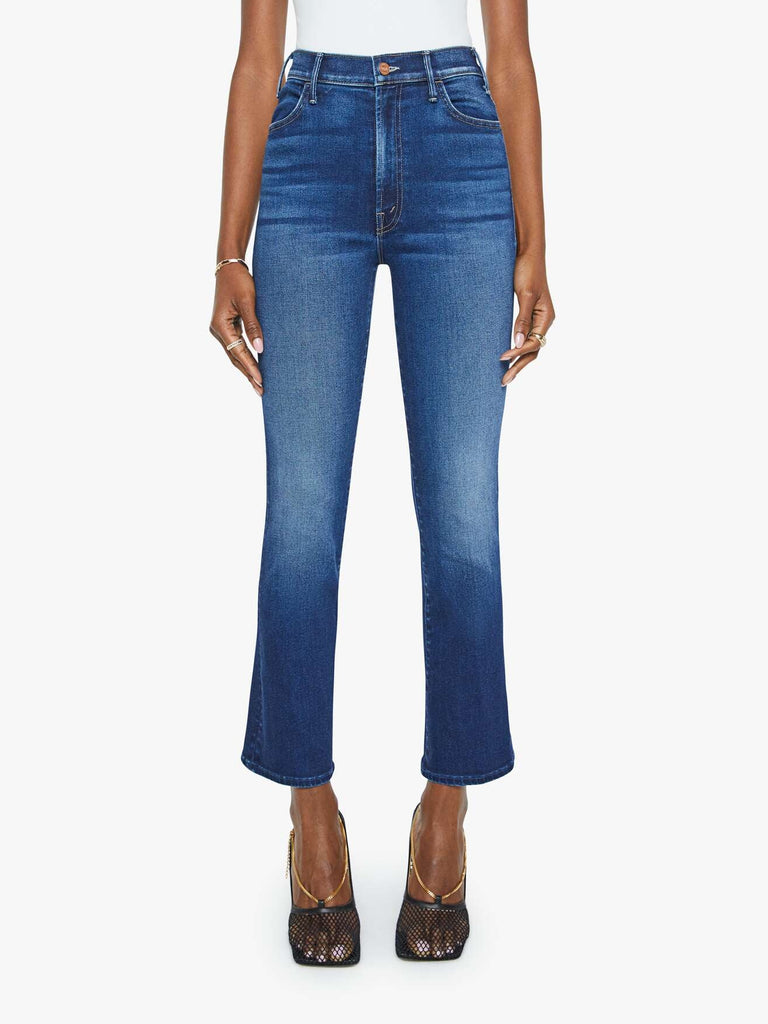 Roll the dice. This bestselling high-rise flare has an ankle-length inseam and a clean hem. Made from stretch denim, Taking Chances is a dark blue wash with whiskering and fading at the knees.