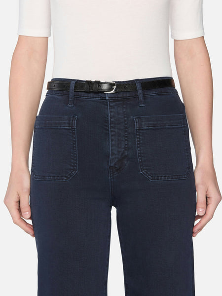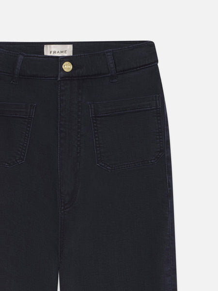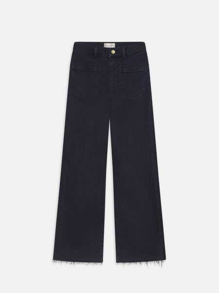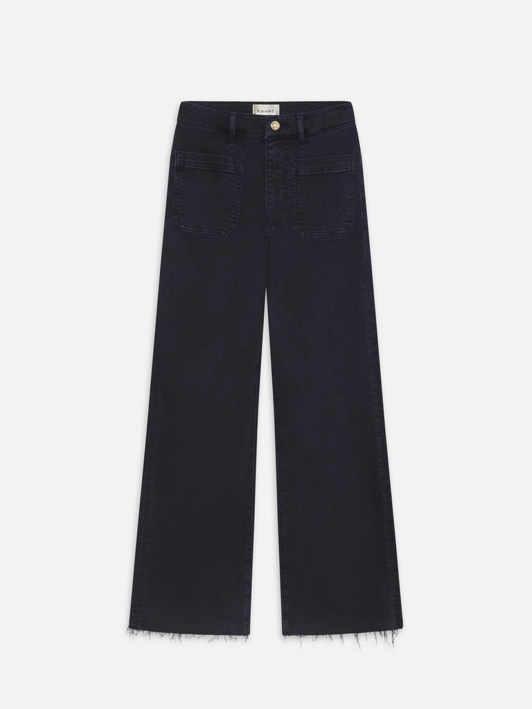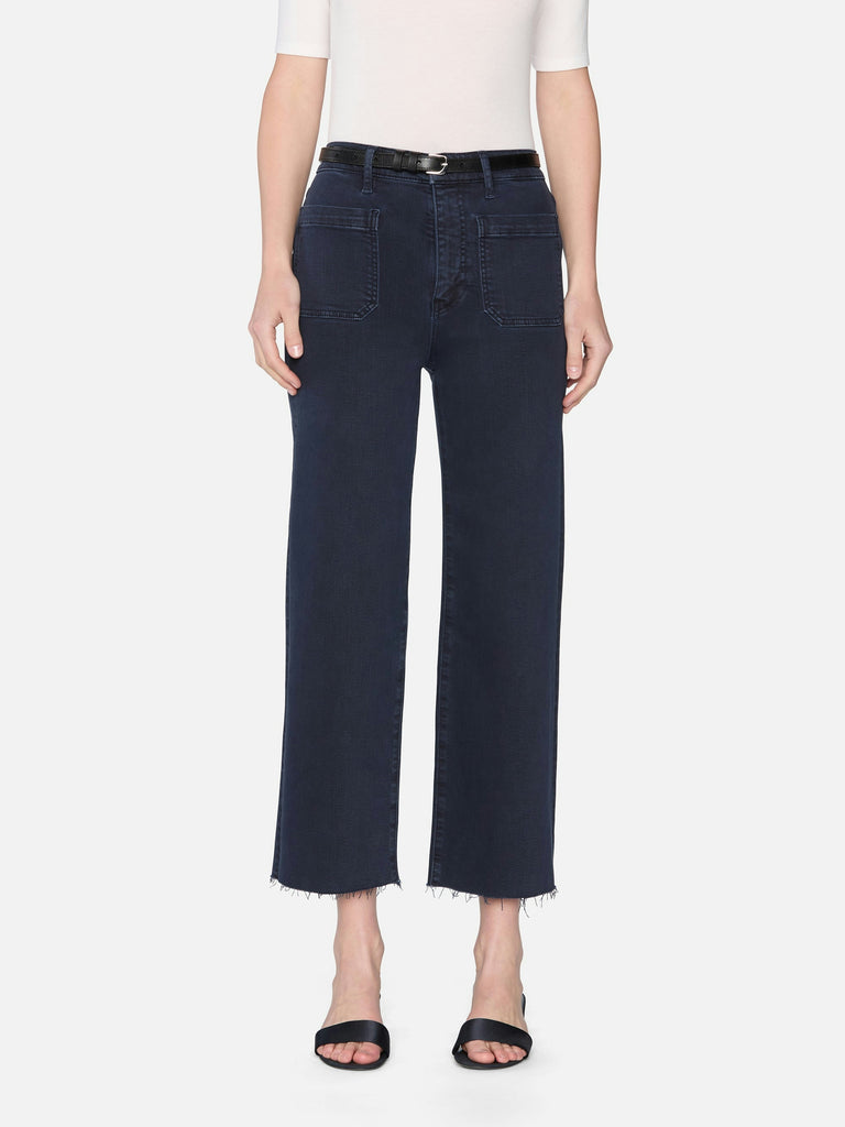 Tailored, with a twist. The Anchor Pant features front patch pockets, a cropped inseam, and a subtle wide leg. The deep navy wash and raw, frayed hem enhance this super stretch silhouette.