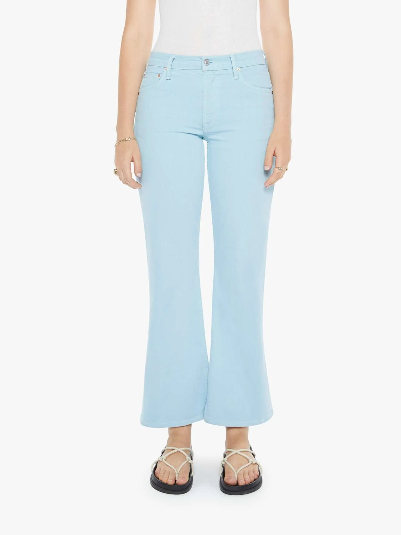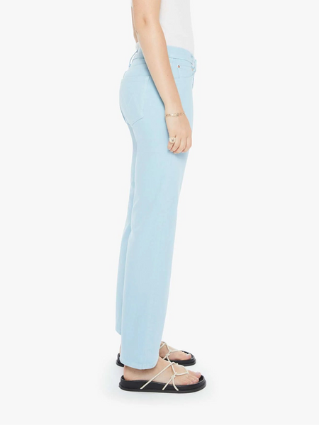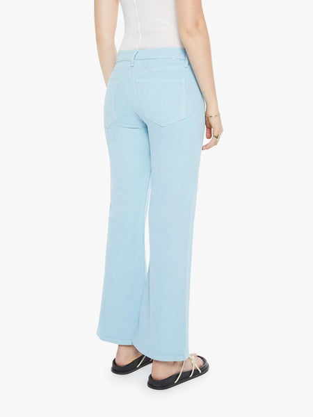 A high-rise bootcut with a looser leg and a 28.25-inch inseam with a clean hem. Made from semi-rigid SUPERIOR denim, the pants are designed in sky blue.