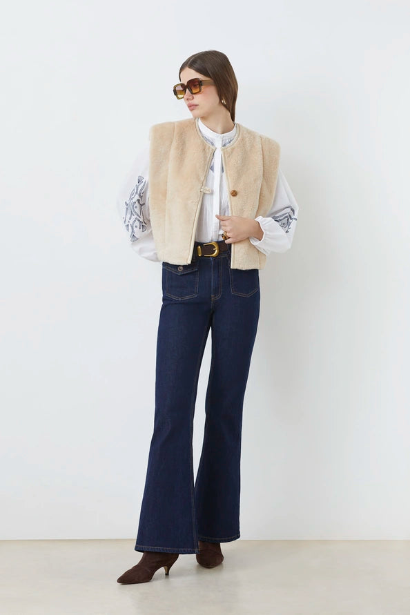 -Short sleeveless faux fur jacket