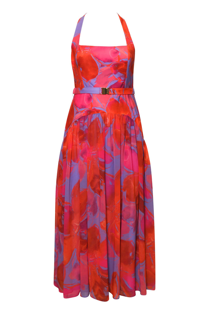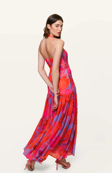 Halter Neck Belted Maxi Dress - Purple Gardenia