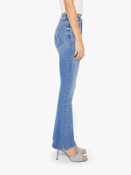 Strike three. This cult-favorite flare jean has a high rise with a 31-inch length inseam and a clean hem. Cut from super stretchy denim, Swing And A Miss is a mid-blue with whiskering and fading at the knee.