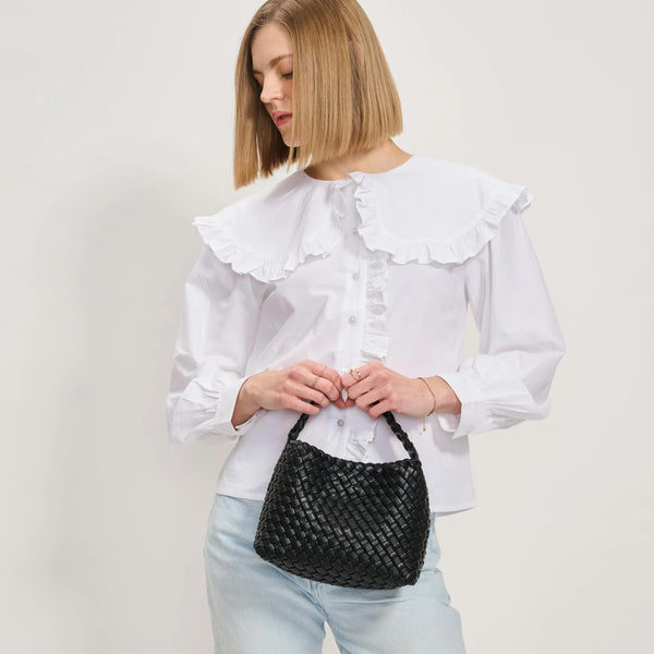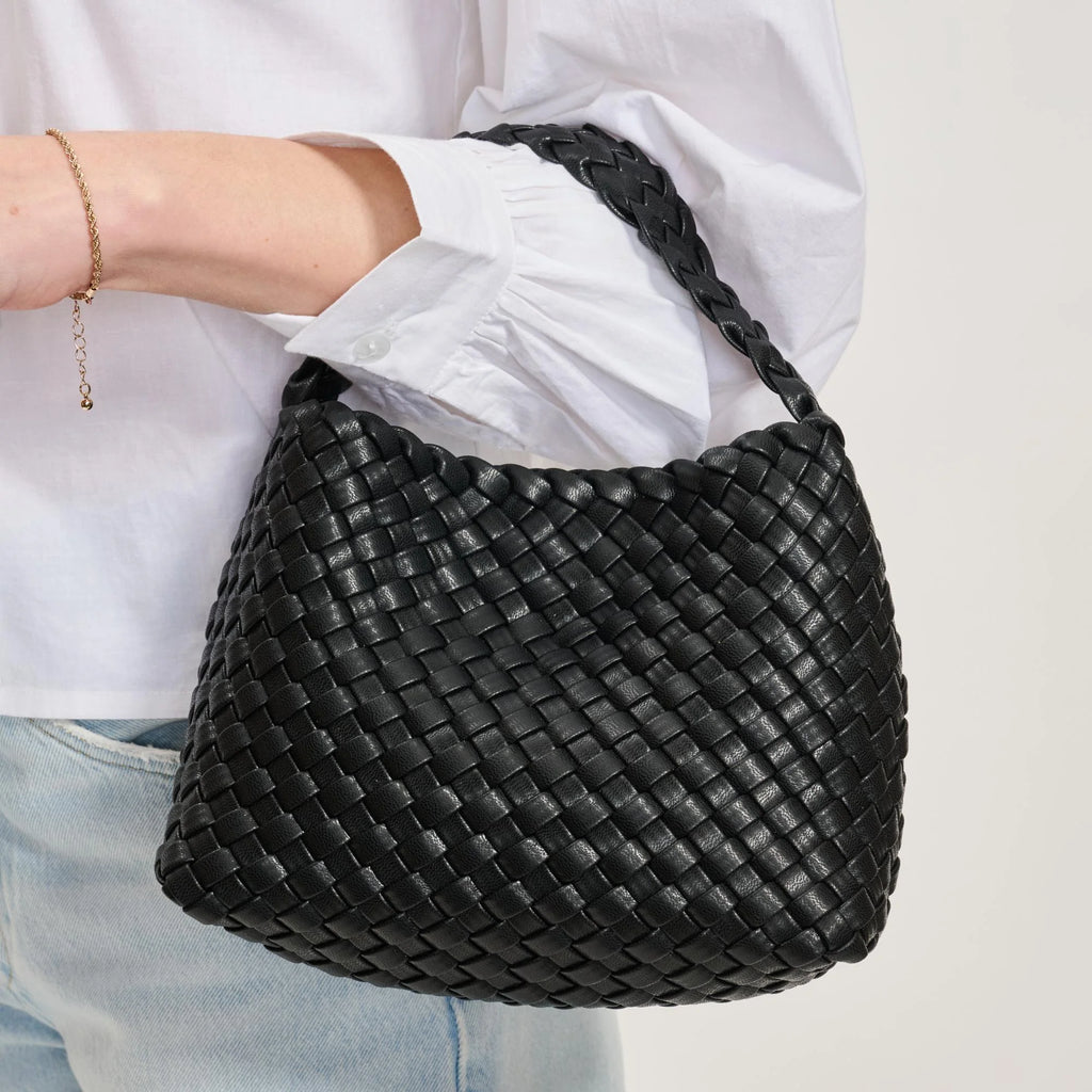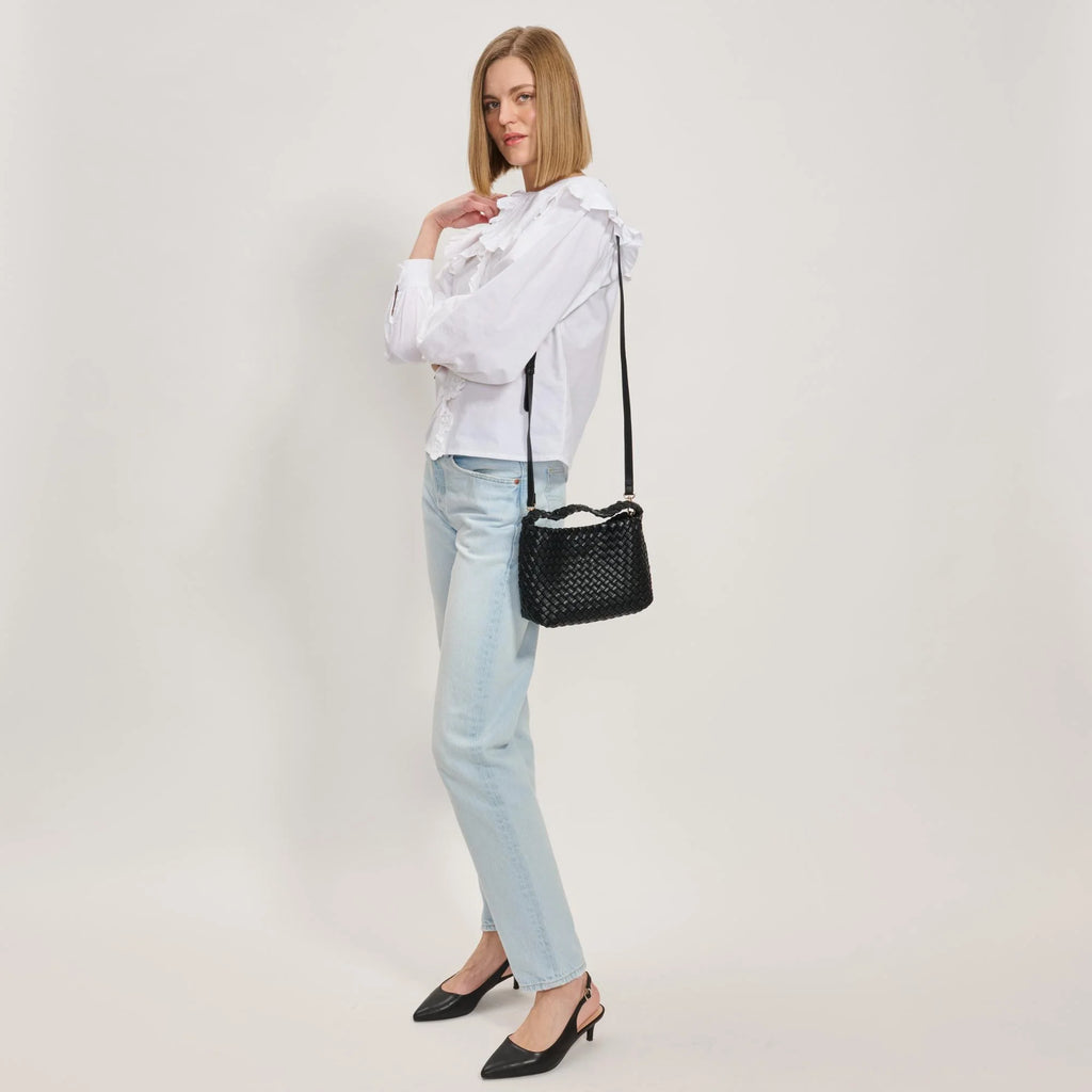 Unleash your inner trendsetter with the Kaia Crossbody, a chic companion for every occasion. This stylish handbag boasts exquisite woven detailing that adds a touch of sophistication to your look. With its adjustable strap, it easily transitions from a casual day out to evening elegance. Inside, you'll find ample space and pocket organization that keeps your essentials secure and accessible. Elevate your wardrobe with this versatile piece that perfectly balances fashion and function. Perfect for the ethically conscious shopper seeking quality and style without compromise. Make the Kaia Crossbody your new go-to accessory today!