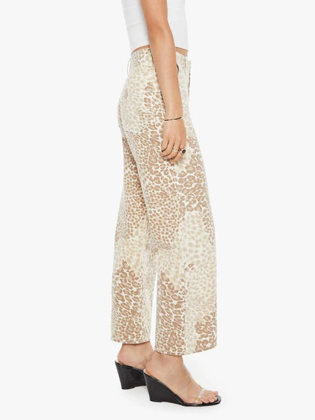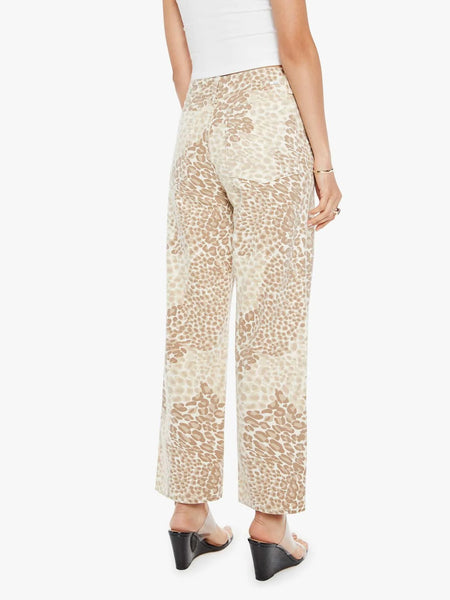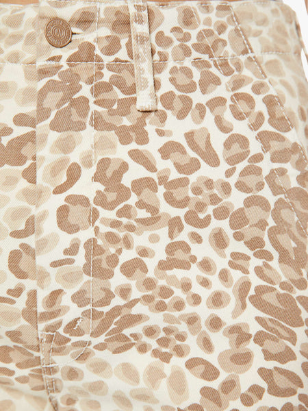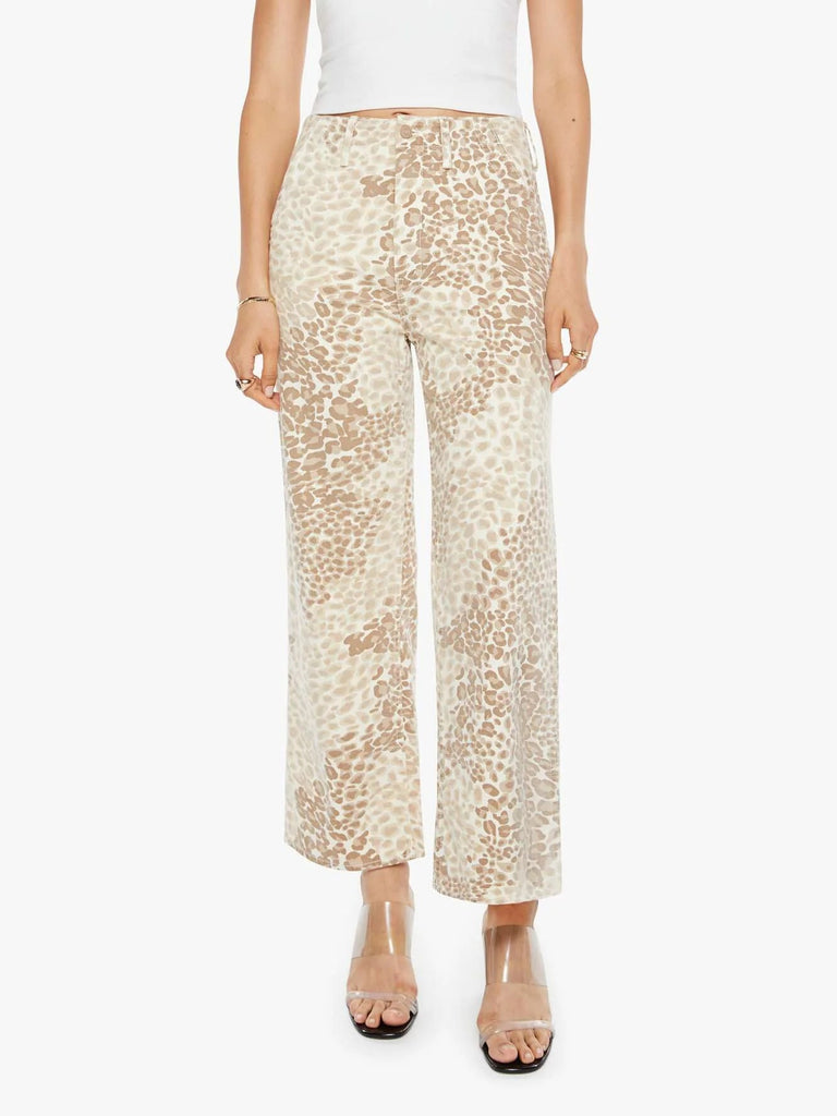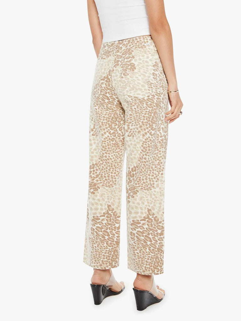 Wild. Super high-waisted pants with a loose straight leg, zip fly, side slit pockets and an ankle-length inseam with a clean hem. Cut from a blend of cotton and linen with a touch of stretch, Spot On is a faded warm-toned leopard print.