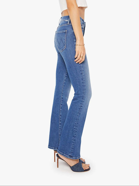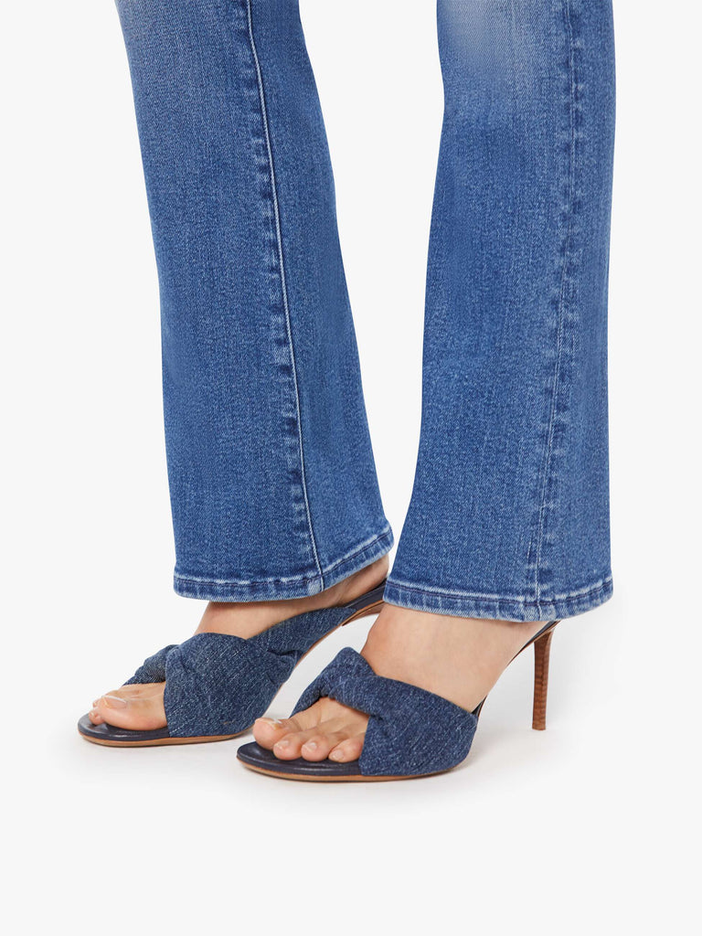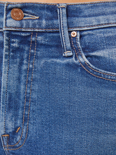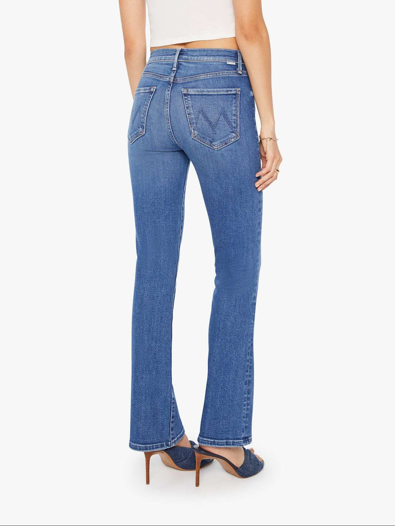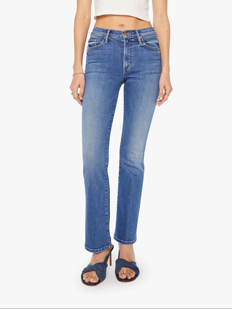 Bench warmers. Narrow flare jeans with a mid rise and a long 31-inch inseam with a clean hem. Made from stretch denim, Dugout Doobies is mid blue with whiskering and fading at the knee.