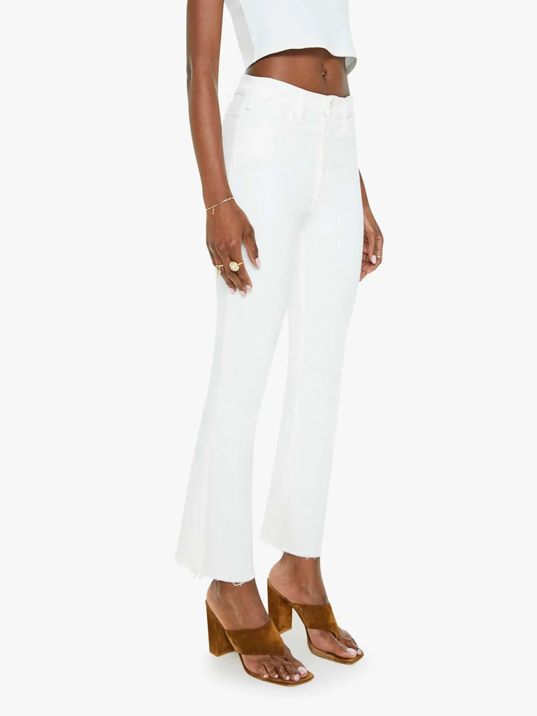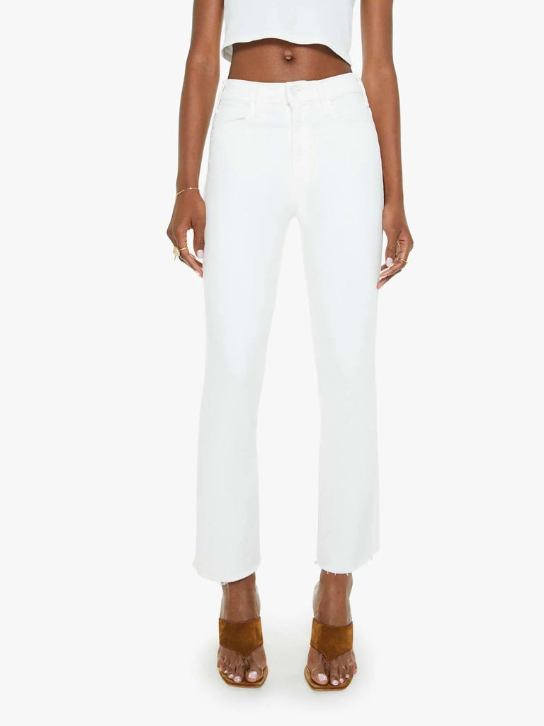 Mirror, mirror. This bestselling high-rise flare has an ankle-length inseam and a raw hem. Made from stretch fabric, Fairest Of Them All is our bestselling white denim.